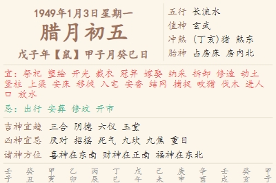 1949年1月3日黄历 时辰吉凶格局