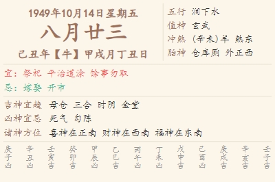1949年10月14日黄历 时辰吉凶格局