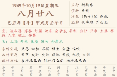 1949年10月19日黄历 时辰吉凶格局
