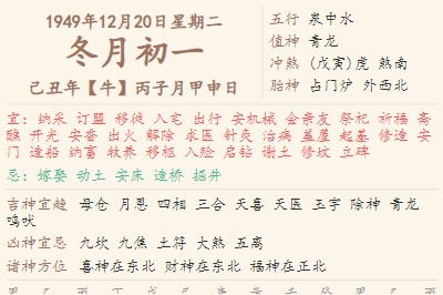1949年12月20日黄历 时辰吉凶格局
