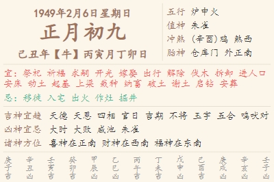 1949年2月6日黄历 时辰吉凶格局