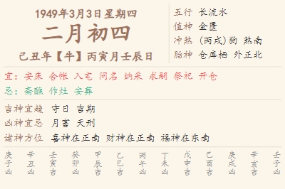 1949年3月3日黄历 时辰吉凶格局