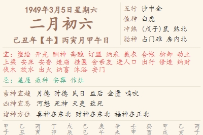1949年3月5日黄历 时辰吉凶格局