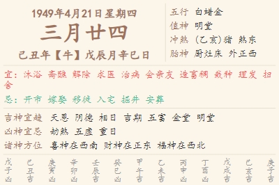 1949年4月21日黄历 时辰吉凶格局