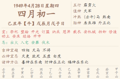 1949年4月28日黄历 时辰吉凶格局