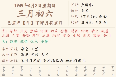 1949年4月3日黄历 时辰吉凶格局
