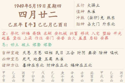 1949年5月19日黄历 时辰吉凶格局