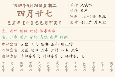 1949年5月24日黄历 时辰吉凶格局