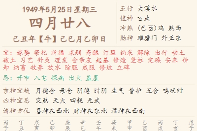1949年5月25日黄历 时辰吉凶格局