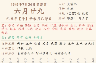 1949年7月24日黄历 时辰吉凶格局