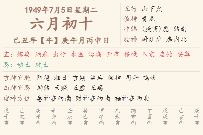 1949年7月5日黄历 时辰吉凶格局