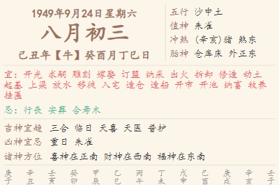 1949年9月24日黄历 时辰吉凶格局