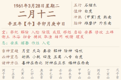1961年3月28日黄历 时辰吉凶格局
