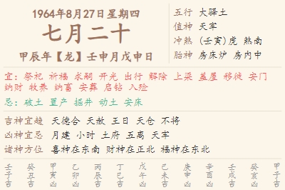 1964年8月27日黄历 时辰吉凶格局