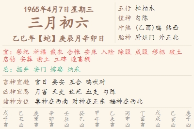 1965年4月7日黄历 时辰吉凶格局