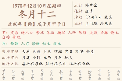 1970年12月10日黄历 时辰吉凶格局