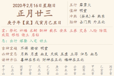2020年2月16日黄历 时辰吉凶格局