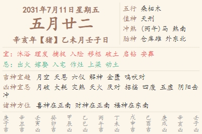 2031年7月11日黄历 时辰吉凶格局